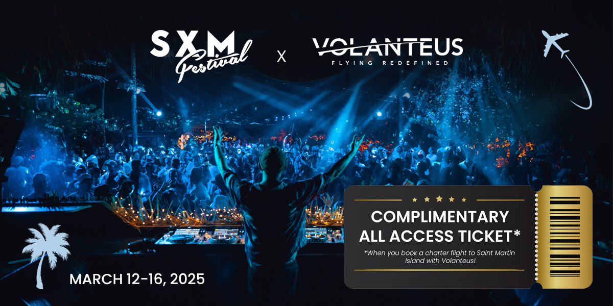 Complimentary all-access tickets to SXM Festival 2025 when you fly to Saint Martin Island with Volanteus.